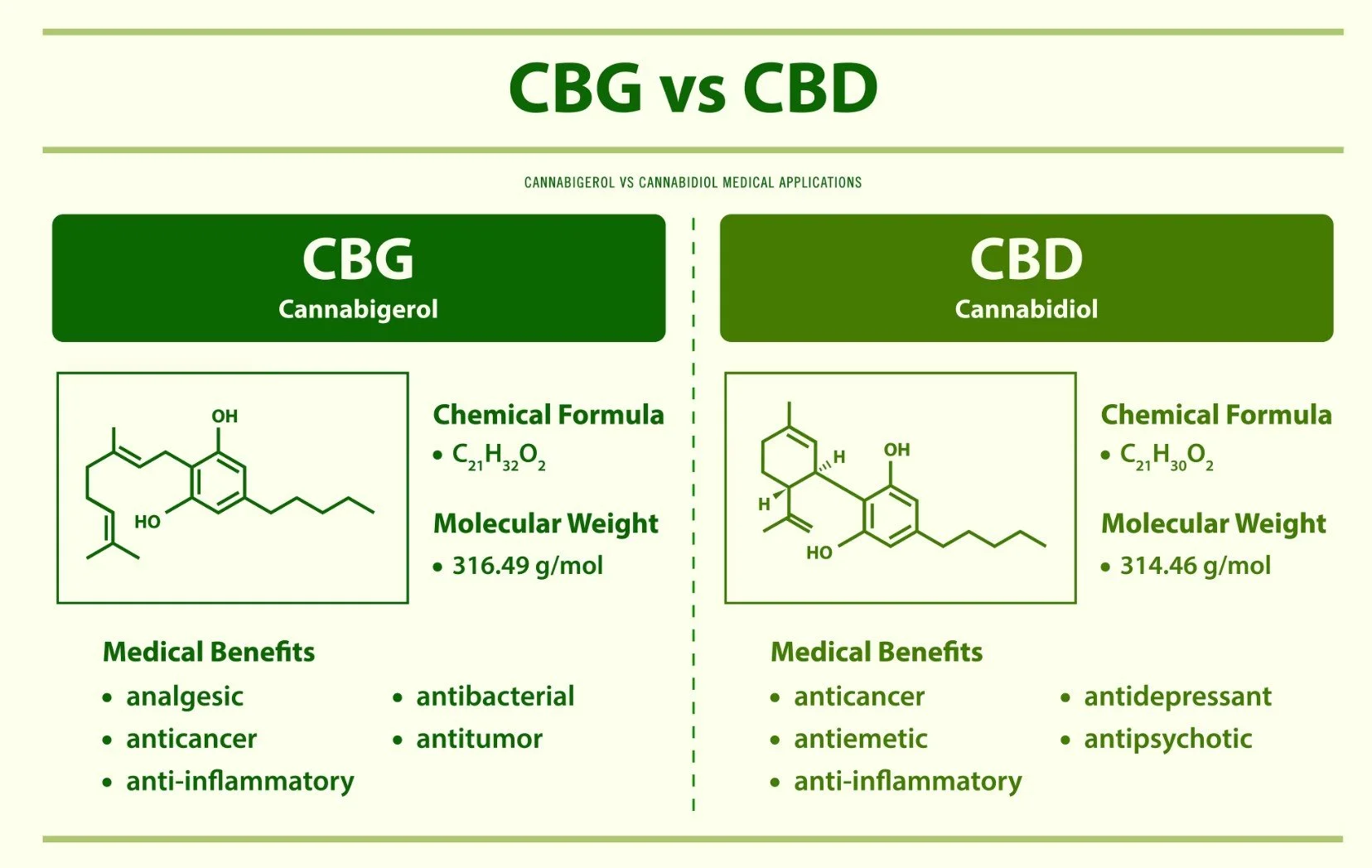 CBD and CBG have been linked as both cannabinoids can offer similar benefits. There has been well-documented CBD research, while CBG investigation is still very limited. Aside from the shared effects with CBD, early studies have indicated CBG can uniquely treat gastrointestinal diseases and has antibacterial properties. As researchers have yet to determine its long-term side effects, drug interactions and safety, it is recommended that users understand study is still ongoing when looking for treatment.